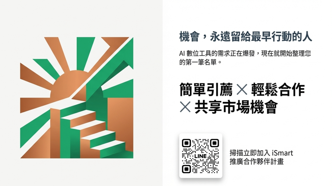 iSmart AI 副收入計畫是一項針對企業數位轉型需求而設計的推廣合作夥伴方案,旨在協助商家利用 AI 技術建立品牌網站與自動化流量。參與者無需具備技術背景或負擔售後服務,僅需透過引薦潛在客戶,將有架站需求的企業對接給專業團隊進行洽談。一旦成交,引薦人即可獲得每案約 NT 7,500 的推廣獎金,成為輕鬆創造額外收入的途徑。該計畫強調在 AI 浪潮下,企業對數位曝光與內容生成的需求急遽成長,是一項低門檻且市場潛力巨大的共享獲利模式。透過簡單的三步驟流程,任何人都能將身邊的商務人脈轉化為實質的經濟收益。