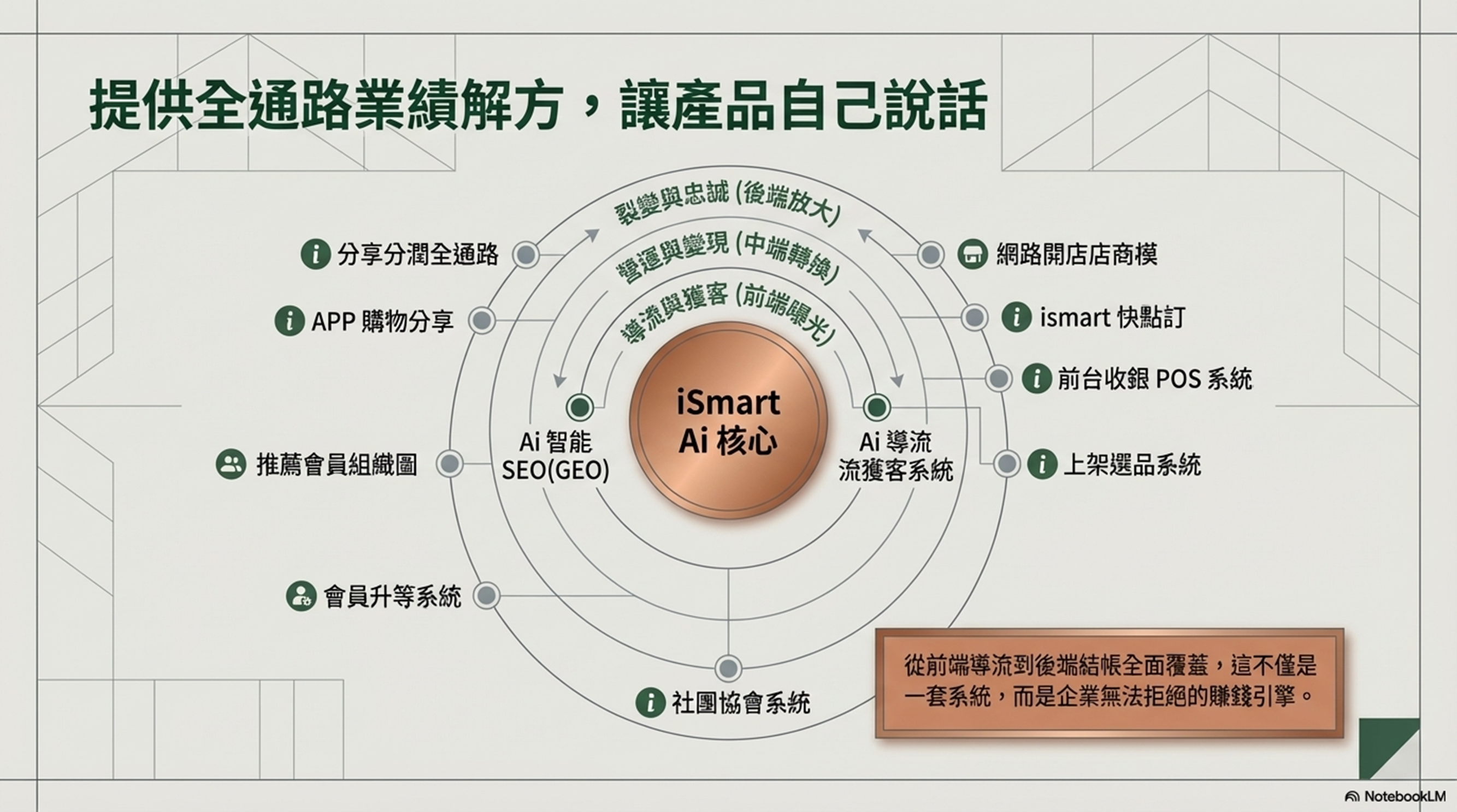 iSmart Ai開店系統正是為 AI 時代打造的一套 AI 開店系統 與 AI SEO 系統。透過 iSmart,企業可以將原本的品牌內容整理成 Google 與 AI 看得懂、願意推薦的模式,提升品牌被搜尋與被發現的機會,同時結合分潤分銷與社群分享機制,讓粉絲與會員也能一起推廣品牌內容。