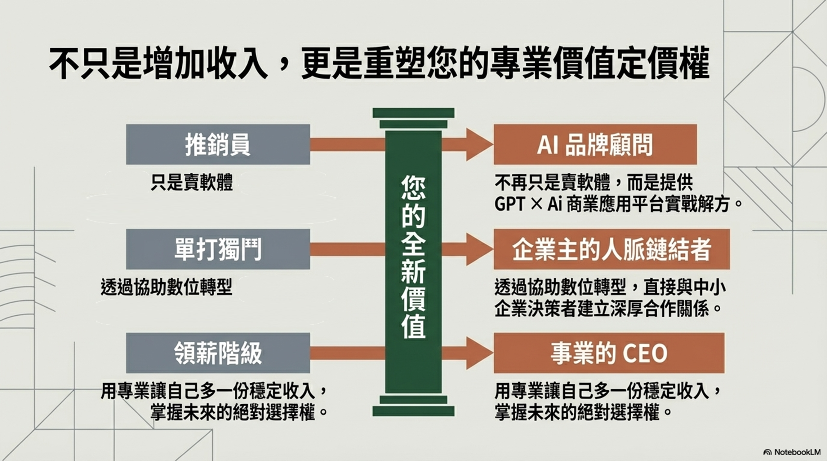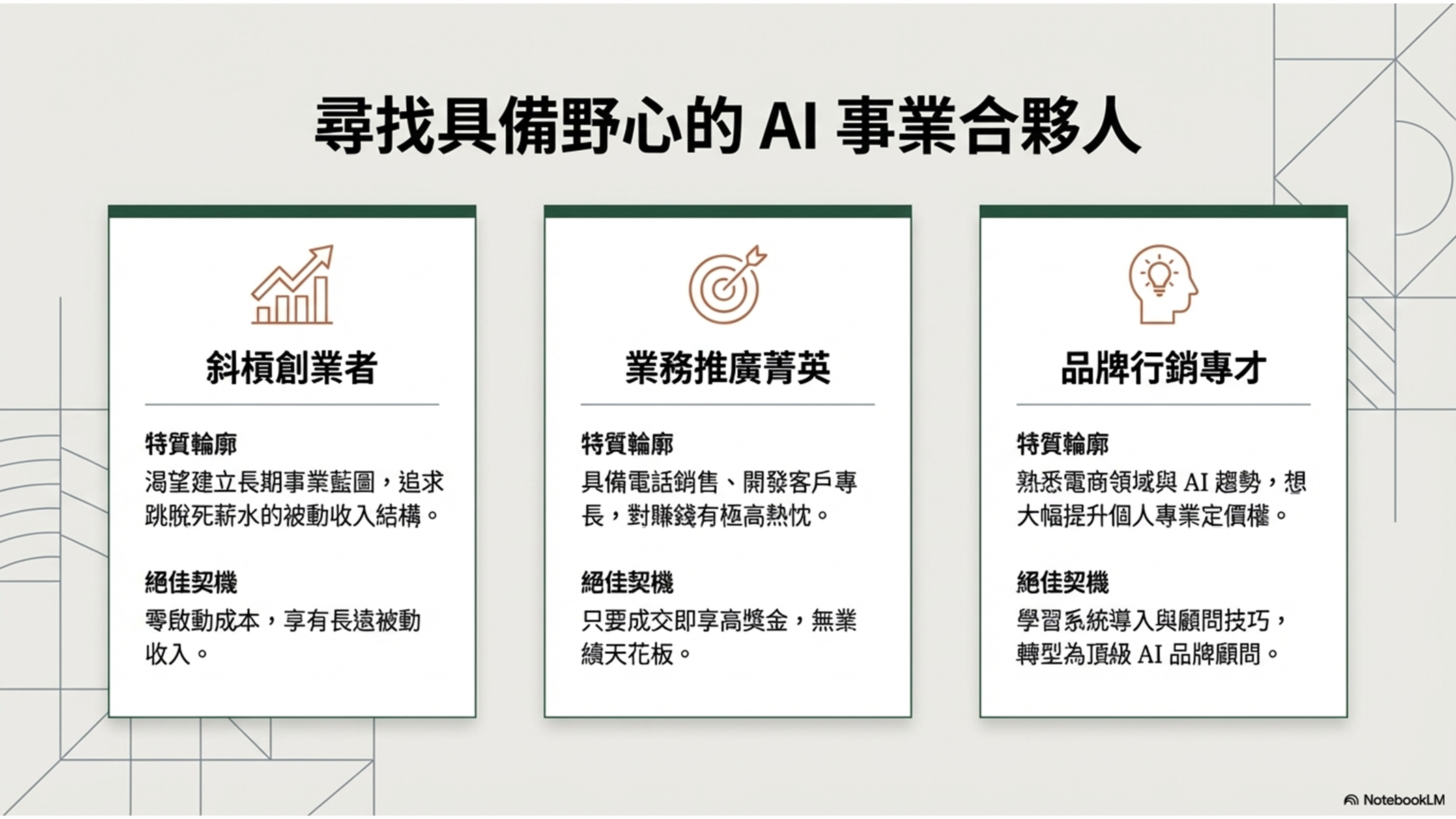 這是一種結合 產業人脈、商務開發與平台資源的合作模式,也是一種新型的 AI 創業機會 與 AI 副業機會。