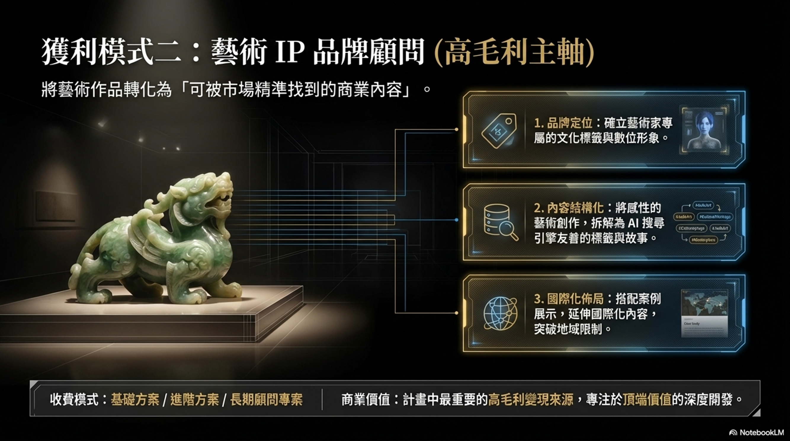 將「IP數位化」轉化為可收費的顧問服務,是本計畫最重要的變現來源之一。