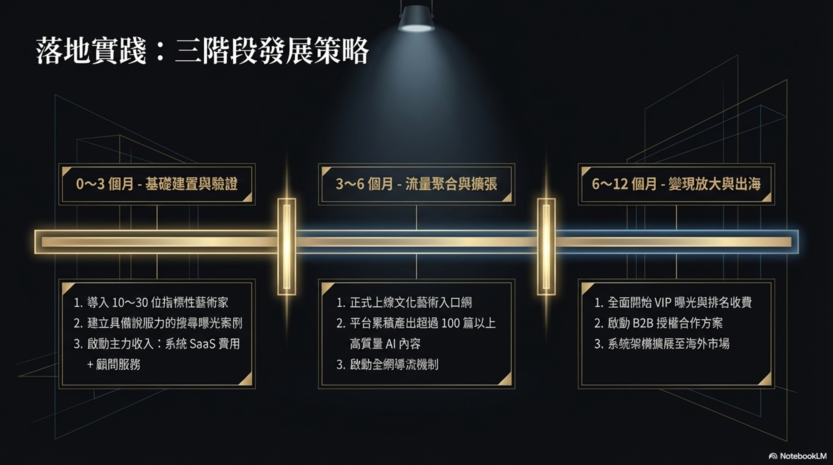 本平台採用「先服務、再平台、最後放大」的三階段商業模式,確保每一階段都能產生實際收入,而非空轉流量。