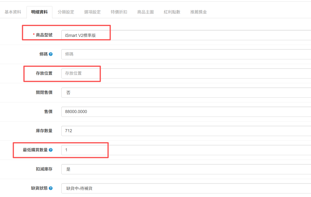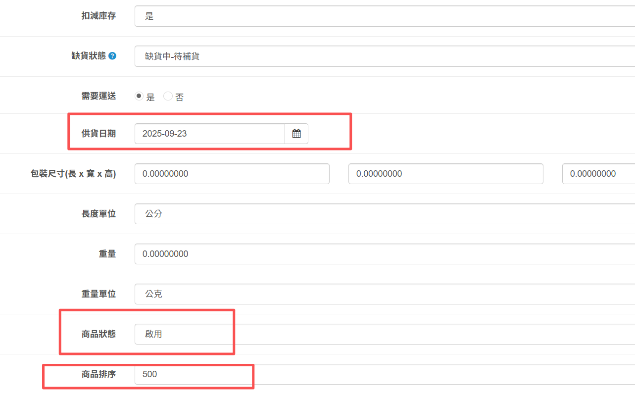 (5.2.4).庫存數量,下單後自動扣除,如果是預購款可以不用扣減庫存,旁邊的扣減庫存選擇"否"即可。